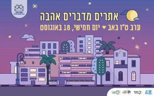 האתרים והאירועים: בית בן גוריון 20:00 "הנערה במרפסת ממול" - מופע מוזיקלי אודות מסעה של הסופרת נאוה מקמל עתיר אל ספרה העוסק בסאגה משפחתית מרגשת על רקע תל אביב של תחילת המאה הקודמת, 70 ₪ מרכז המבקרים שרונה, הקריה- 19:00 "מַיִם רַבִּים, לֹא יוּכְלוּ לְכַבּוֹת אֶת-הָאַהֲבָה..." סיור תיאטרלי עם שחקני עסקי במה בין בתי כורכר וגגות רעפים אדומים בעקבות אהבות אפופות מסתורין, כניסה למוזיאון והמנהרה הטמפלרית, 70 ₪ מוזיאון האצ"ל בתשח – 18:30 "מר בגין" - הצגה בכיכובו של דני שטג, קורות חייו של מנחם בגין מאז ימיו במחתרת ועד עלייתו לראשות הממשלה, בשילוב וידיאו, 25 ₪ מוזיאון הלח"י- 19:00, 21:00 (שתי הצגות), "אהבה בין השורות" – שחקני תיאטרון הכרכרה ינערו מאבק את דפי המכתבים -כינויי אהבה, סודות, לבטים, תקוות וחלומות. סיפורים מרגשים בין גבר לאישה, בין לוחם לחברו ואהבה עצומה לארץ, לאדמה, תקווה וחלום על מדינה חופשית, 30 ₪ מוזיאון חוסמסה יד ל"הגנה" 19:00 "ערב חברים אצל זליג ופרידה" – עם אורחים מיוחדים: הגנן, אדריכל המבנה, מלווה שיירות ועוד. יוגש כיבוד קל מעשי ידיה של פרידה, 20 ₪ מקווה ישראל- 19:00 "סיפורים ומנגינות" - עם שוקה דינור (מפינת 'זיקוקין דינור' בתוכניתו של שמעון פרנס בגל"צ) ואנה גברילוב בחליל צד. פתיחת הערב בסיור באתרים הנפלאים של 'מקוה ישראל' בהדרכתה של אביבה שוורץ,80 ₪ בית באו- "אהבה עברית", משוררים קוראים שירים בהשראת אהבתם של יוסף ורבקה באו, עם ח"כ אכרם חסון בהרצאה על האהבה כערך אנושי, צלילה והדסה באו, שושיה בארי דותן, הרצל ובלפור חקק, 40₪ בית העצמאות- 19:30 "להרוג את מר פוגל" (תיאטרון ליר)- לערב אחד, חוזר בית העצמאות לימי ראשית תל אביב, עת נרצח מר פוגל במופע הגאלה של ברכה צפירה בבית ראש העיר, במעמד משפחות המייסדים. כל הנוכחים עצורים, כולם בדרגת חשודים ולכולם מניע. דרך סיפורי האהבה של משפחות המייסדים עולה חקירה מסתורית ואפלה. 50 ₪ (1+1 למחזיקי דיגיתל) מוזיאון נחום גוטמן – 10:00-16:00 ביקור בתערוכה מאוסף עבודותיו של נחום גוטמן ושל המאייר הבינלאומי המוערך יזהר כהן, במוזיאון השוכן בבית הסופרים שבשכונת נווה צדק. 24 ₪ בית ז'בוטינסקי- 19:00 "אשירה לך, תל-אביב", ערב של קריאה, זמר, יין וכיף עם שירי אהבה של משורר בית"ר שלמה סקולסקי לעיר העברית הראשונה, עם נגה אשד, הקריין דן כנר, ובהנחיית יוסי אחימאייר, 30 ₪ בית הפלמ"ח- (ערב קודם, יום ד' 17.8 בשעה 19:00 ) - "מהקיבוץ לפלמ"ח - באהבה", הרצאה של פרופ' אלון קדיש על 'הפרה והעגל' – הפלמ"ח והקיבוץ, ומופע של להקת פינה בעמק בשירי ארץ ישראל, 30 ₪