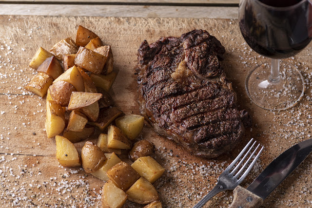 (98 ₪); סטייק אנטריקוט -300 גרם, עשוי בגריל, מוגש לצד תפו"א צלוי.